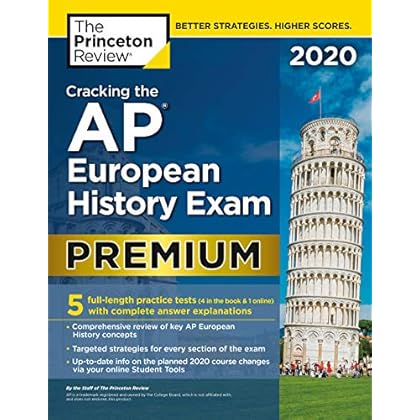 THIS JUST IN! As of 3/20/20, in response to the novel coronavirus (covid-19), the College Board has decided to administer all 2020 exams online. You’ll still be able to prep with this book! But for your best results, you’ll want to modify what you’re focusing on (both question types and content). Remember, everyone’s in the same boat, so just do your best and keep practicing. You’ve got this! Head to your Online Student Tools page (access included with your book purchase) for more info from us on: • What the test changes will look like • What it will cover • How to use your book to prep for the adapted exam*******************************************PREMIUM PREP FOR A PERFECT 5! Ace the 2020 AP European History Exam with this Premium version of The Princeton Review's comprehensive study guide. Includes 5 full-length practice exams, thorough content reviews, targeted test strategies, and access to online extras.Techniques That Actually Work.• Tried-and-true strategies to help you avoid traps and beat the test• Tips for pacing yourself and guessing logically• Essential tactics to help you work smarter, not harderEverything You Need to Know to Help Achieve a High Score.• Up-to-date info on the planned 2020 course changes via your online Student Tools • Detailed review of the source-based multiple-choice questions and short-answer questions• Comprehensive guidance for the document-based question (DBQ) and long essay prompts• Engaging activities to help you critically assess your progress• Access to online study plans, a historical themes matching exercise, and morePremium Practice for AP Excellence.• 4 full-length practice tests in the book with detailed answer explanations• 1 full-length practice test online with detailed answer explanations• End-of-chapter questions for targeted content review• Helpful timelines of major events in European history